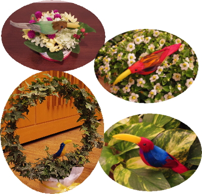 テーマの『鳥』に合わせて、 会場を彩る草花にはカラフルな鳥さんたちが共に→ 皆さんの演奏と一緒に口ずさんでいるようでした(^^) |