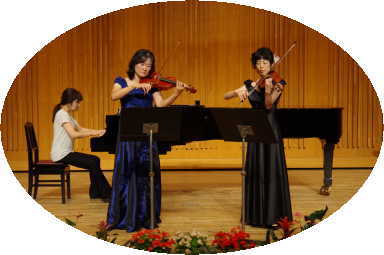 | W.18:30〜 <合奏> 41.『千と千尋の神隠し』より“いつも何度でも” ![]() 第W部の合奏は、小3〜大人まで10名で、2パートに分かれて演奏しました♪ 真ん中にいるのは、そう「カオナシ」さん!「ハク」や「千尋」もいます(^^) あんぷがややこしい曲で、みんなで苦労しましたが、本番は、全員きちんと暗譜で弾きこなしました! 2パートが交替にメロディーを奏で、本物の竪琴を真似たピチカートも、綺麗に響きました♪ |