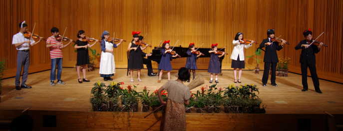 T.13:30〜 <合奏> 1.『となりのトトロ』より“となりのトトロ” ![]() 今回のテーマは今年創立30周年を迎える「ジブリ」! 1曲目は、4歳〜小学校5年生までの12名による合奏で、3パートに分かれてで演奏しました♪ 間奏の時に移動して立ち位置を入れ替えたり、最後は弾きながら退場していったり・・・ と、難しい動きもこなしながら、明るい演奏を聴かせてくれました♪ トトロ、メイちゃんやお父さん、ネコバスなど、観ていても微笑ましい演奏でした(^^) |