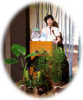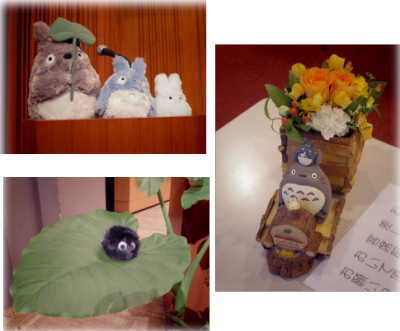 ![]() 司会台の上にトトロ、周りの草木にはまっくろくろすけがいます(^^) |