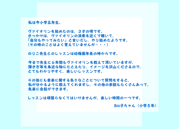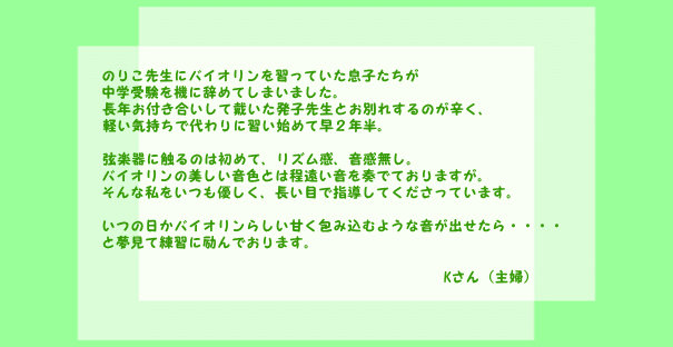 生徒さんから、ヴァイオリンについて、レッスンについて
