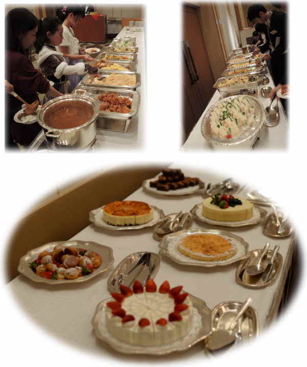 楽器を片付けて、会場のレイアウトを変更、集合写真撮影をしたら、後半は立食パーティーです☆ まずは待ちきれんばかり、とビュッフェのお食事(^〜^)v 食べるより先に、ビンゴの名前集めに勤しむ人たちも♪ ![]() ホテルメイドのケーキは今回も大好評!おいしくてほっぺがさがります(*^^*) |