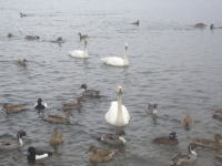 雪が舞う中、白鳥さんとカモさんたちと戯れてきました(^0^)