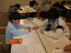 聴いているみんなは、配られた紙とえんぴつを手に・・・