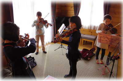 二日目。朝食前に自主練習に励むこどもたち♪ やる気まんまんです!! ![]() 合宿では、必ずみんな係を担当します。たとえば・・・ ![]() ピアノ係は、練習で使用する電子ピアノを都度持ち運び、組み立て・解体をします! セッティング係は、練習でも使用する本番の会場の床にバミリ。演奏の際の重要な目安になります! |