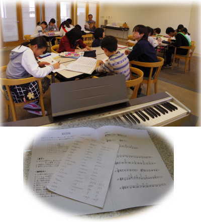 楽典のお勉強に、楽語のおさらい。 明日はテストがあるので、みんな真面目に取り組んでいます! ![]() もちろん、練習も一生懸命!! 途中参加の大人の方も加わっています。 ![]() |