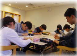 一番のリラックスタイムは、ごはんタイム(^〜^) 今年はこんなポーズでわいわい♪ ![]() 夜は全員で、自主練習に精を出していました!! ![]() |