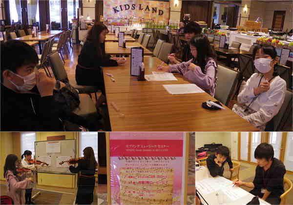 毎日朝昼晩の食事前に、検温と体調確認を実施。ひとりひとり体温計を持参して健康観察にもつとめました! 今回は男女別チームをつくり、楽典・卓球・音楽研究の課題に取り組みました。 ヴァイオリンで演奏するボーイング付けをチームで考えたり、表現力の感性、実行力を高める課題に向き合いました。 難しいながらも、とても有意義な講習です。 |