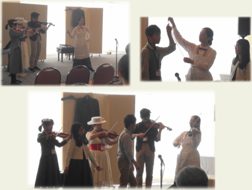 今回は生徒5人なので、全曲演奏でのるメンバーもいれば、演奏の中で演技したり歌ったり、踊ったり・・・ ほとんど全員全乗り公演。 係の仕事もみんなでかけもち、日直制を採用して分担して行ないました。 |