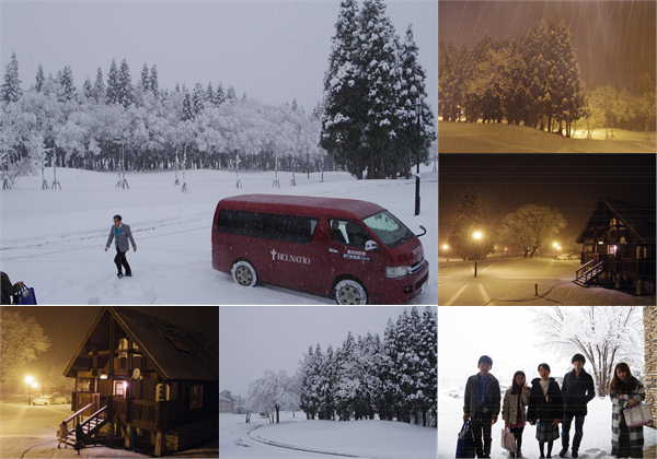 そんなこんなで練習と準備に追われていた3日目の夜。 えっえっ?! まさかの夜更けに大雪!! 朝、目覚めたら一面銀世界に様変わり!! 東京から来る私たちは、毎回雪景色が楽しみのひとつ。 ・・・今年は比較的たくさん積雪があり、期待していたものの3月に入って高温が続き、 残念ながら見られなかった雪景色が・・・ そこにありました。 このコロナ禍、がんばっている自分たちへの、 神様からのプレゼントのような雪でした。 |