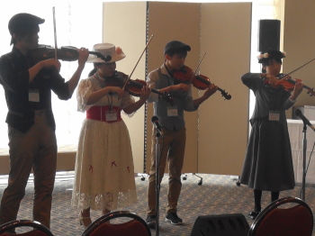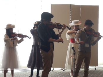 四日目最終日。 心洗われるようなまっしろな雪景色。 参加者が減ったため、いつもの会場では広すぎることと、経費のことを考慮して、 ホテル側が提案してくれた舞台は、ビュッフェ会場横のロビースペース。 高い吹き抜けの空間に、イスが並べられました。 コンサートには、合宿のお世話をして下さっているホテルの方をはじめとして、 聴きに来てくださったご家族の方々、 そして宿泊されている一般の方にも、複数ご来場頂きました! ![]() さあ、開演です♪ |
