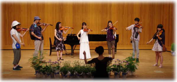 | W.18:30〜 <合奏> 39.大野雄二“小さな旅〜光と風の四季〜” ![]() 第W部の合奏は、中2〜大人まで7名で、ヴィオラを含む3パートに分かれて、 「小さな旅」にちなんで、国内を旅する旅人、のコンセプトの衣装で雰囲気を出して奏でました。 しっとり情緒豊かな演奏で、しんみり心に響きました♪ |