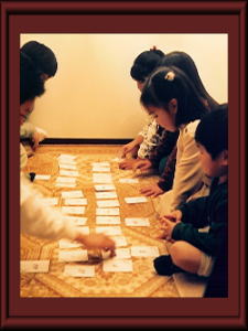 ひとやすみしたらゲームタイム! 講師手作りの「音楽ビンゴ」や 「音楽かるた」で真剣勝負?!です(^^) これを機に楽しみながら、 楽語をいっぱい覚えてもらうようにしました♪ 帰りにはお楽しみのプレゼントも・・・! 年上のお兄さんが小さい子を一緒に盛り上げて、 楽しいパーティーでした! |