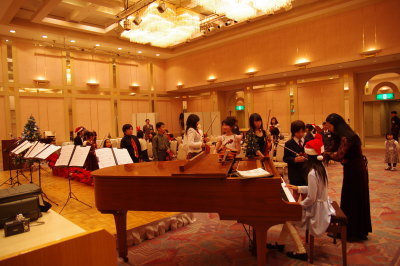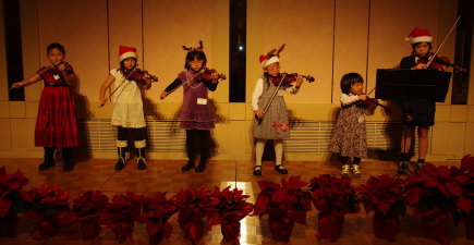 司会は生徒さんから2名、若々しいフレッシュな司会でした! ![]() ベルに続いて、 クリスマスの名曲を5つのグループに分かれて演奏です♪ ![]() ご家族の賛助出演あり、サンタさんの演奏もあり♪ |