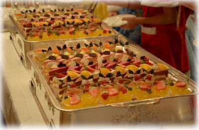 乾杯して、パーティーが始まると、まずはビュッフェのお食事(^〜^)v ![]() ケーキはやはり大人気!! 最初はひとり1個ずつ!?でしたが、途中で解禁、たくさん食べました! ![]()