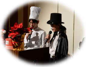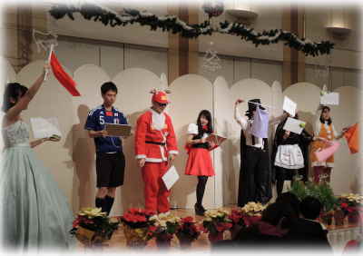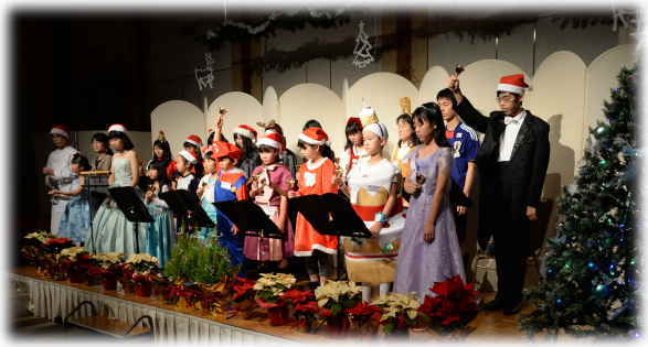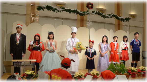 生徒さんのご協力を得て、 ツリーの飾りつけ、イルミネーション、お花のセッティングなど 参加者が一体となって、会場の準備! 会が始まる前から気分が高まります☆ ![]() 今回の司会は中3、小6、大人スタッフのメンバー♪ 明るく丁寧な司会で盛り上げてくれます! |