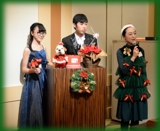 前半は、クリスマス音楽のコンサート♪ オープニングのハンドベル演奏♪ クリスマスムードを高めるベルの音色が、会場に響き渡ります☆ ![]() |