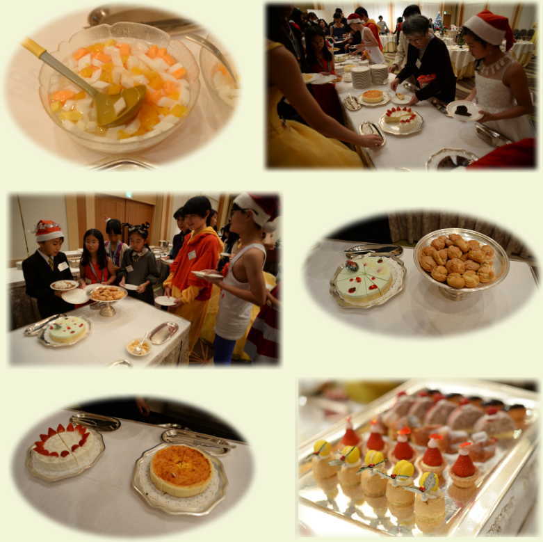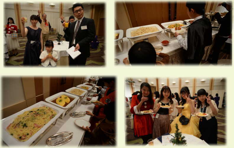 後半は立食パーティー☆ 乾杯したら、最初の歓談タイムは、美味しそうなビュッフェのお食事(^〜^)v ビンゴの名前集めをしながら、会話に盛り上がる人たちも♪ ![]() ビンゴゲームをはさんで、次の歓談タイムにはお待ちかねのスイーツが登場!! ![]() ホテルメイドのケーキは、今回アイスクリームやスペシャルガトーも出て、みんな大満足(*^^*) |